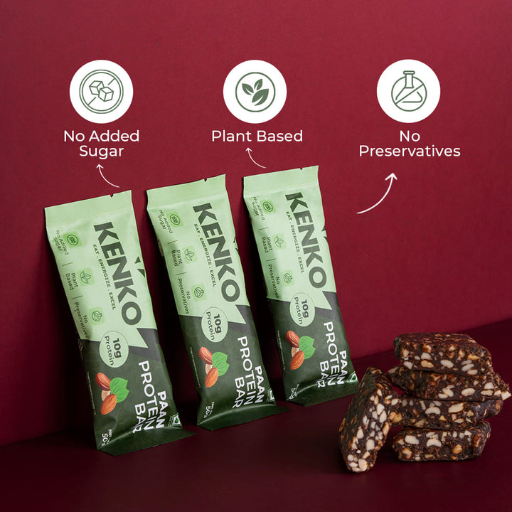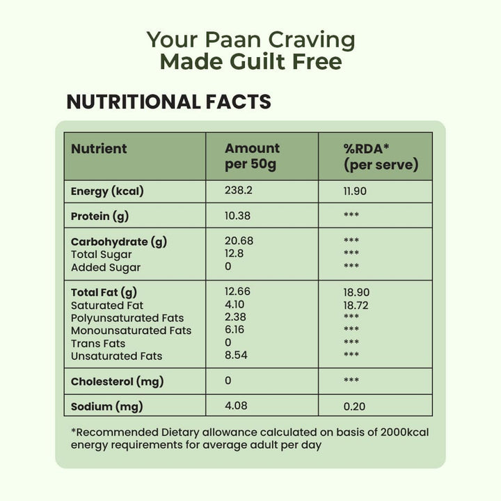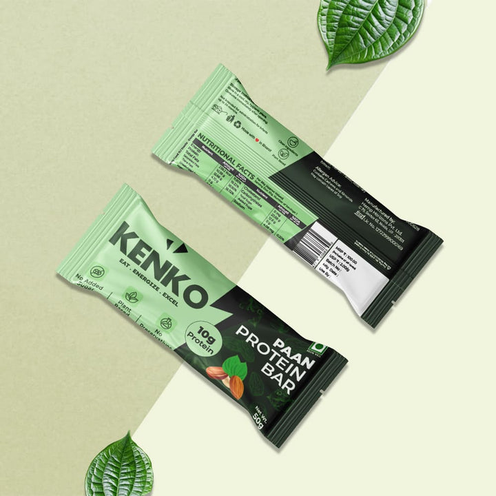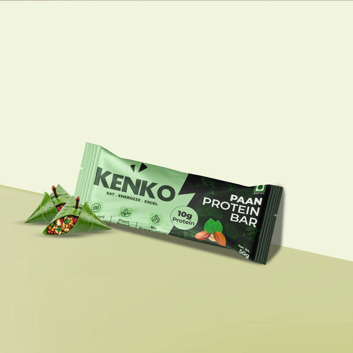 Elevate your snacking with The Kenko's Paan Flavour Protein Bar. Inspired by the rich,Β refreshing taste of Indian paan, this bar combines cashews, almonds, dates, and dark chocolate with 10g of high-quality protein to fuel your active lifestyle. Itβs more than a snack, itβs a tribute to flavour, culture and clean eating.